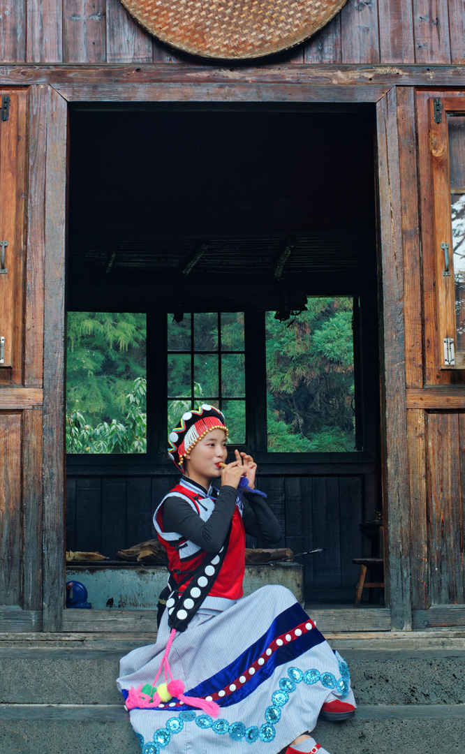 摩梭人是納西族的一個支系,多聚居在寧蒗縣永寧鄉(xiāng)的瀘沽湖畔,人口約8萬。摩梭民居就地取材,用圓木橫壘為墻,建成合院式寨樓居住,這類井干式建筑又稱木楞房,具有較好的御寒保溫性能,體現(xiàn)了順應自然的生態(tài)觀。摩梭人保留了母系大家庭的基本形態(tài),呈現(xiàn)在您眼前的是一個完整的摩梭家庭的四合院,由正房、經(jīng)堂、花樓、門樓等構成,正房坐北朝南,通稱祖母房。居住一家中最年長的女性,同時也是一大家人飲食、待客、議事的核心場所...